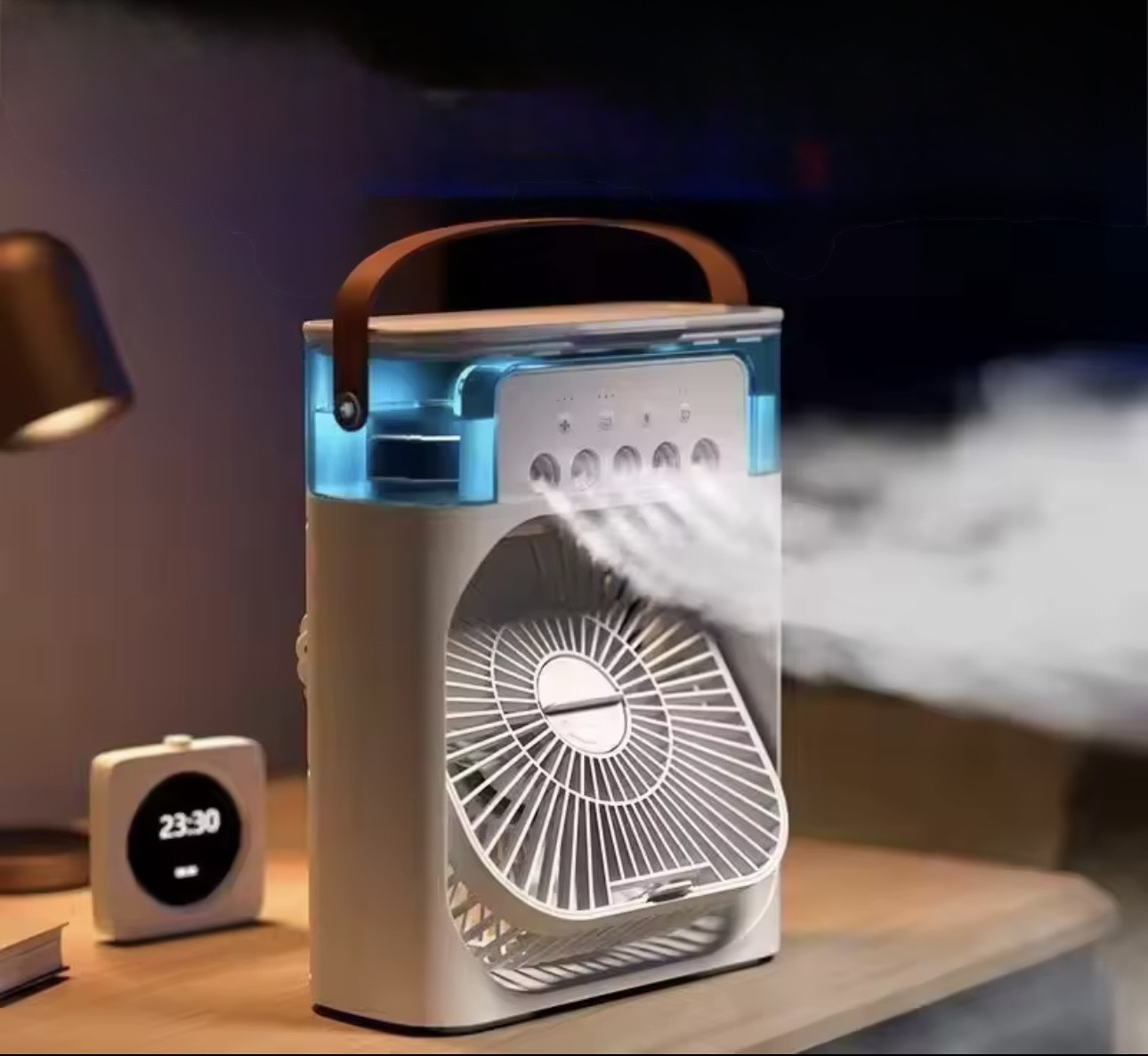 This mini fan combines traditional airflow with evaporative cooling. Just fill the built-in water tank, turn it on, and enjoy a refreshing breeze with optional cool mist. It works by drawing in warm air and passing it through water-soaked filters to deliver a cooler, more comfortable airflow.